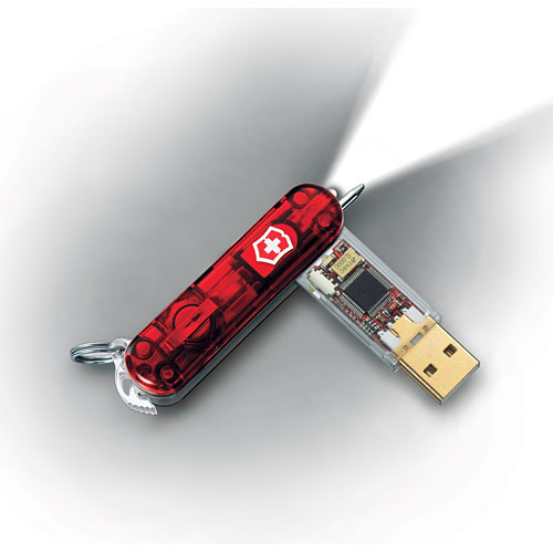 Funções: Armazenamento de dados USB 2.0, argola para chaveiro, luz branca mini, esferográfica. Garantia de tempo de vida. Tamanho: 58mm. Material das ferramentas em aço inoxidável. Material do punho em plástico de alta resistência.